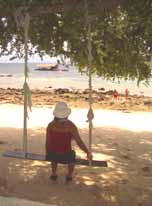 If you enjoy swimming, snorkeling, a beautiful beach, fishing, or just a secluded, natural tropical setting, plan a day trip to Bat Island (Ko Khaangkhaao: click here for another look). Snorkeling 100 m off the main beach, expect to see dozens of kinds of coral, and many thousand colorful little fish. Out of the water you can enjoy digging for tiny surf clams, scrambling along the rocky coast or, if you're not feeling energetic, just sitting on the beach with a cold drink and not too many other people around. If the sea is calm, it's great fun to take your boat or kayak a bit further to Ko Thaai Taa Muen and the little beach on the southwest side of Bat Island, where there's great snorkeling in somewhat deeper (3 - 7 meters) water. Here you can see some very big sea anemones, and the occasional large fish. Click here for more photos.
